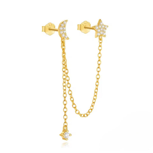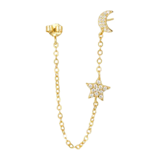 Original price $13.00 - Original price $13.00Original price$13.00$13.00 - $13.00Current price $13.00The Star & Moon Chain earring is crafted from 925 Sterling Silver, ensuring both durability and a timeless shine. Featuring celestial star and ...