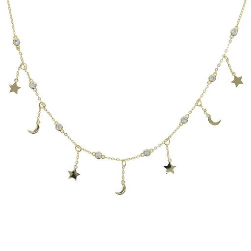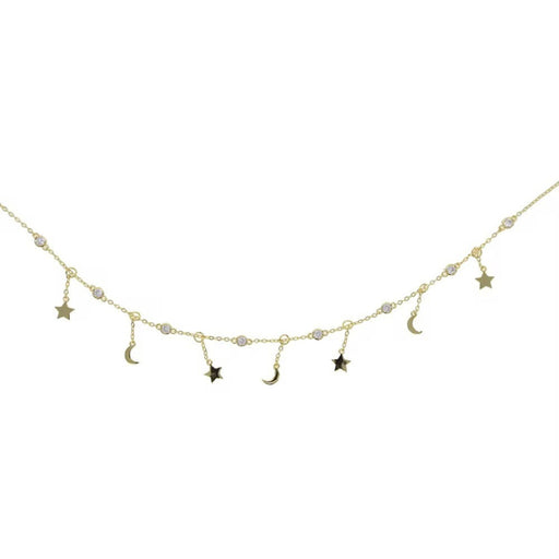 Original price $22.00 - Original price $22.00Original price$22.00$22.00 - $22.00Current price $22.00The Celestial Drop Choker necklace features delicate gold plating and charming drop pendants shaped like stars and a moon. Its refined design offer...