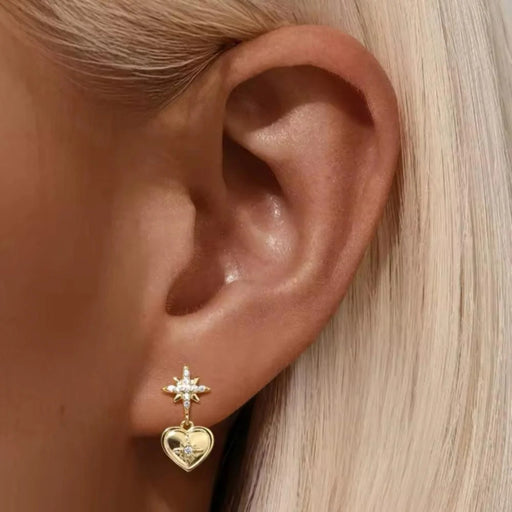 Original price $15.00 - Original price $15.00Original price$15.00$15.00 - $15.00Current price $15.00Add a touch of stardust to your style with our Stardust Heart studs. Crafted from 925 Sterling Silver and layered with 18K Gold Plated, these earri...